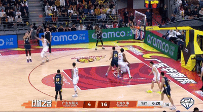 第一节广东队上来就被上海的一套内外连线+跑轰反击直接打懵,第一节进行到还剩3分47秒,广东队已经落后上海20分,杜锋再次准备换人,焦泊乔来到场边候场。