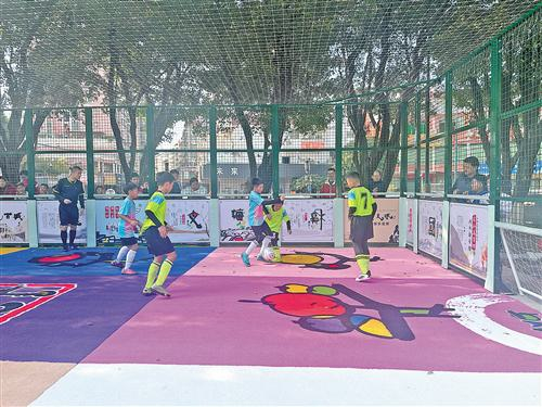 “加油!加油!”“注意防守站位,保持团队配合!”“好球!继续保持状态!”……比赛现场人声鼎沸,与传统足球赛相比,笼式足球的赛场空间更为紧凑,却丝毫没有削弱赛事的激烈程度。赛场上,小球员们配合默契,闪转腾挪间,精妙的传球、犀利的突破和精彩的进球轮番上演,场边观众的加油声、喝彩声以及教练的指导声此起彼伏,激情在围网之间持续升温。